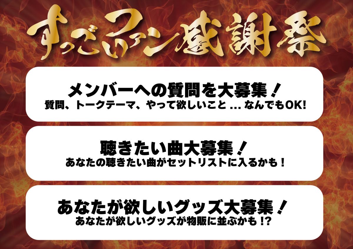 すっごいファンの皆様からトーク内容、やって欲しい曲、欲しいグッズも募ります!
